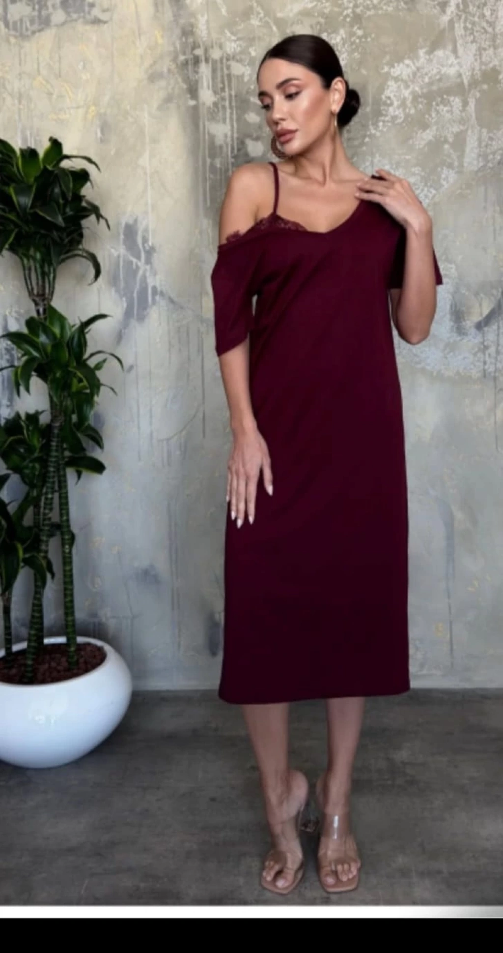 Bordo R. Yaka Dantel Süprem Kadın Elbise