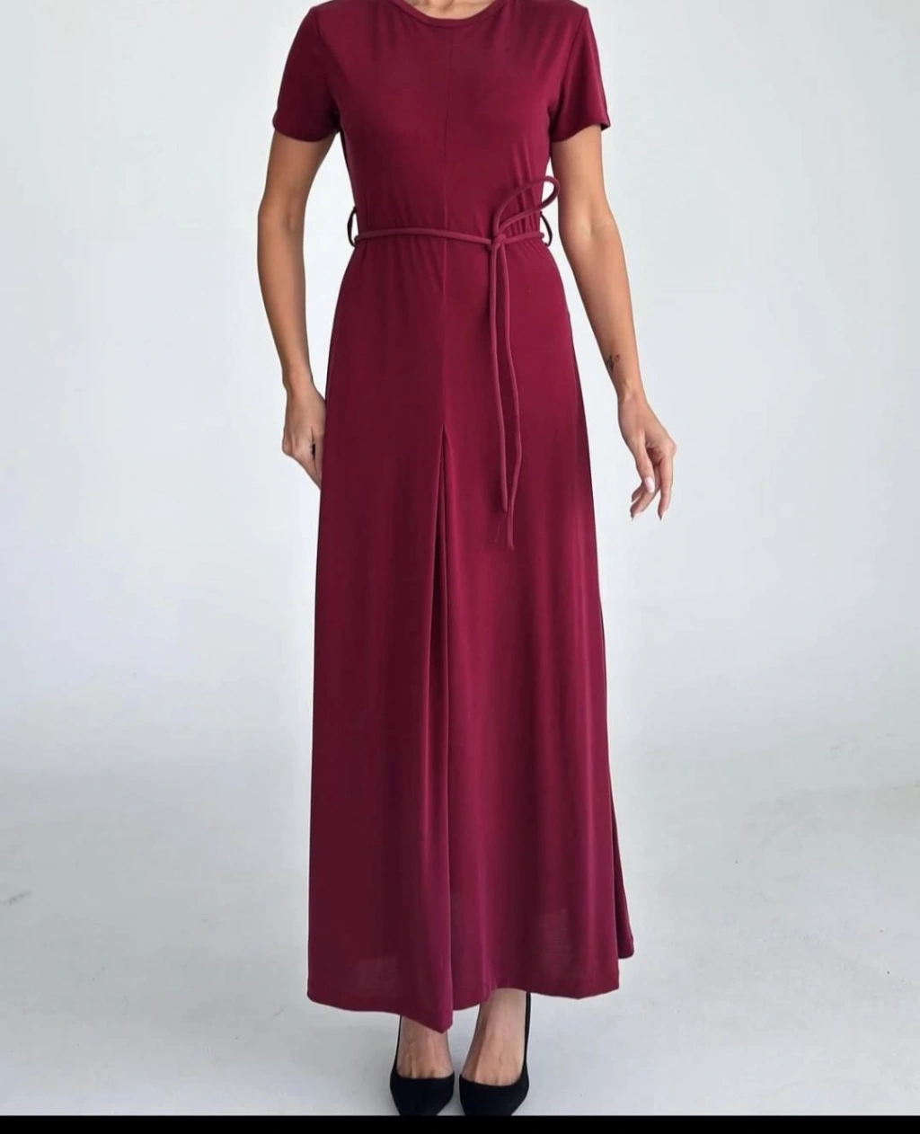 Taş R. Bel İpli Uzun Modal Bayan Elbise