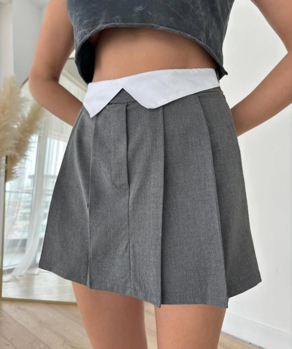 Siyah R.Kendinden Desenli Bel Lastikli Şifon Etek