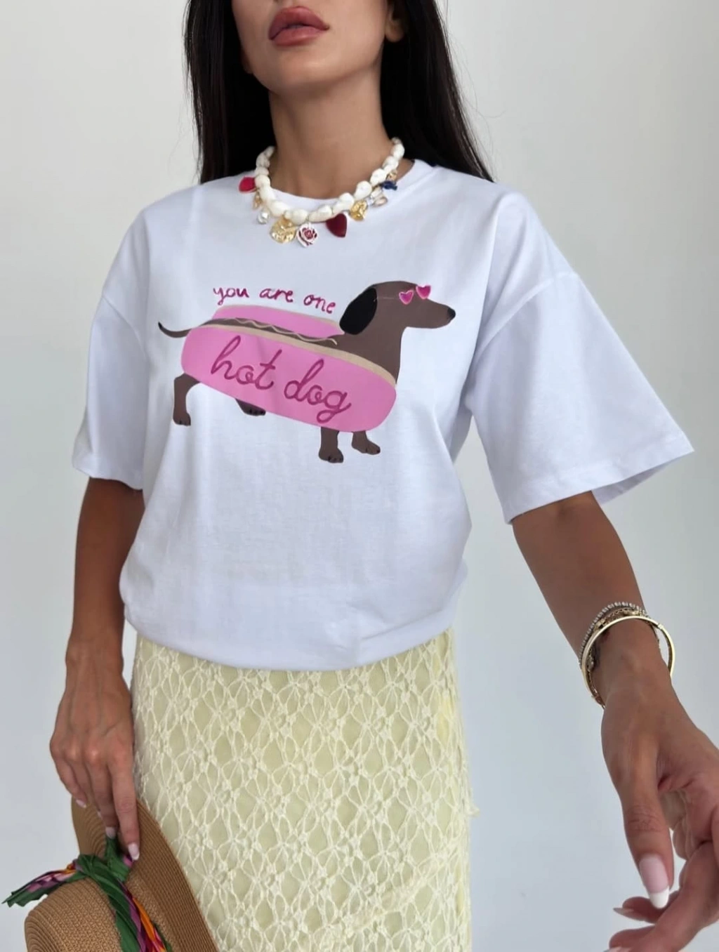 Beyaz R.Önü Renkli Baskili Bayan Tshirt