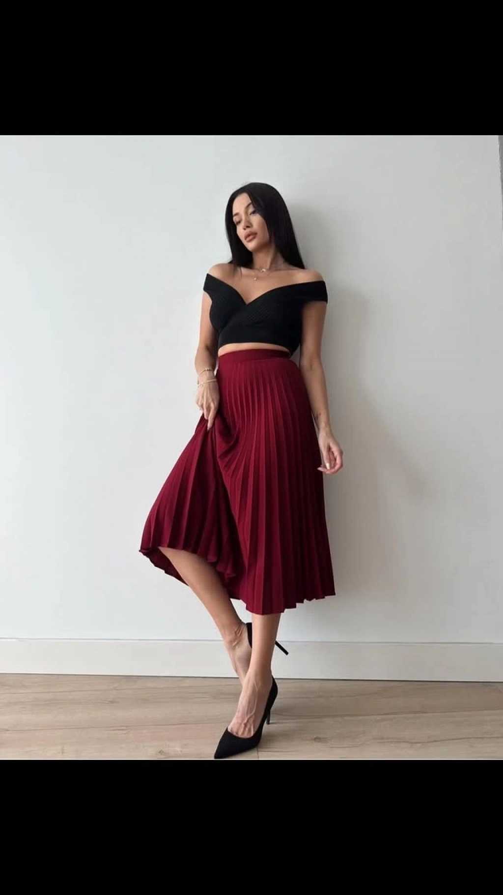 Siyah R.Dantel Kumaş Kendinden Desenli Midi Boy Etek
