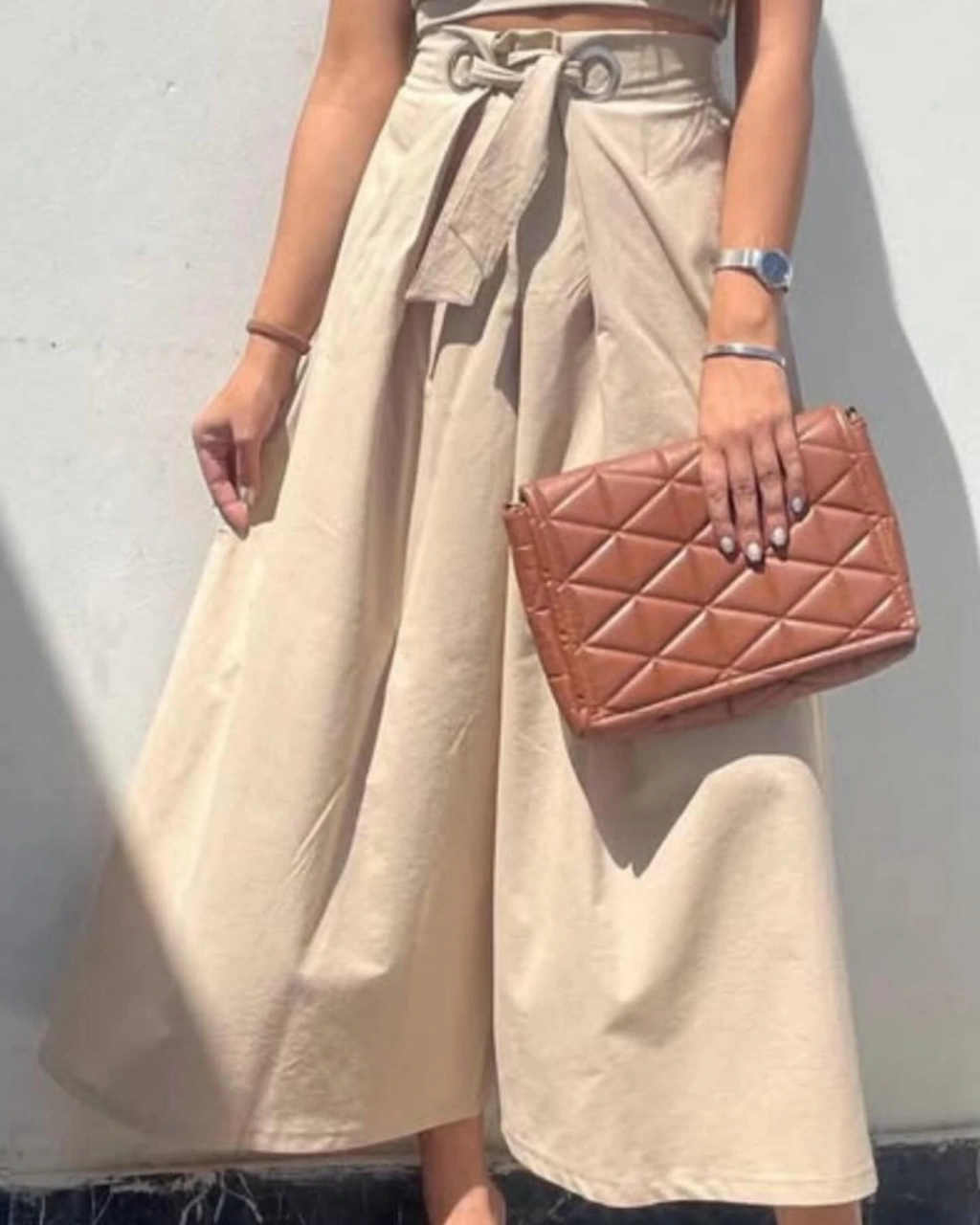Krem R.Bel Kemer Detaylı Bol Paca Bayan Pantolon