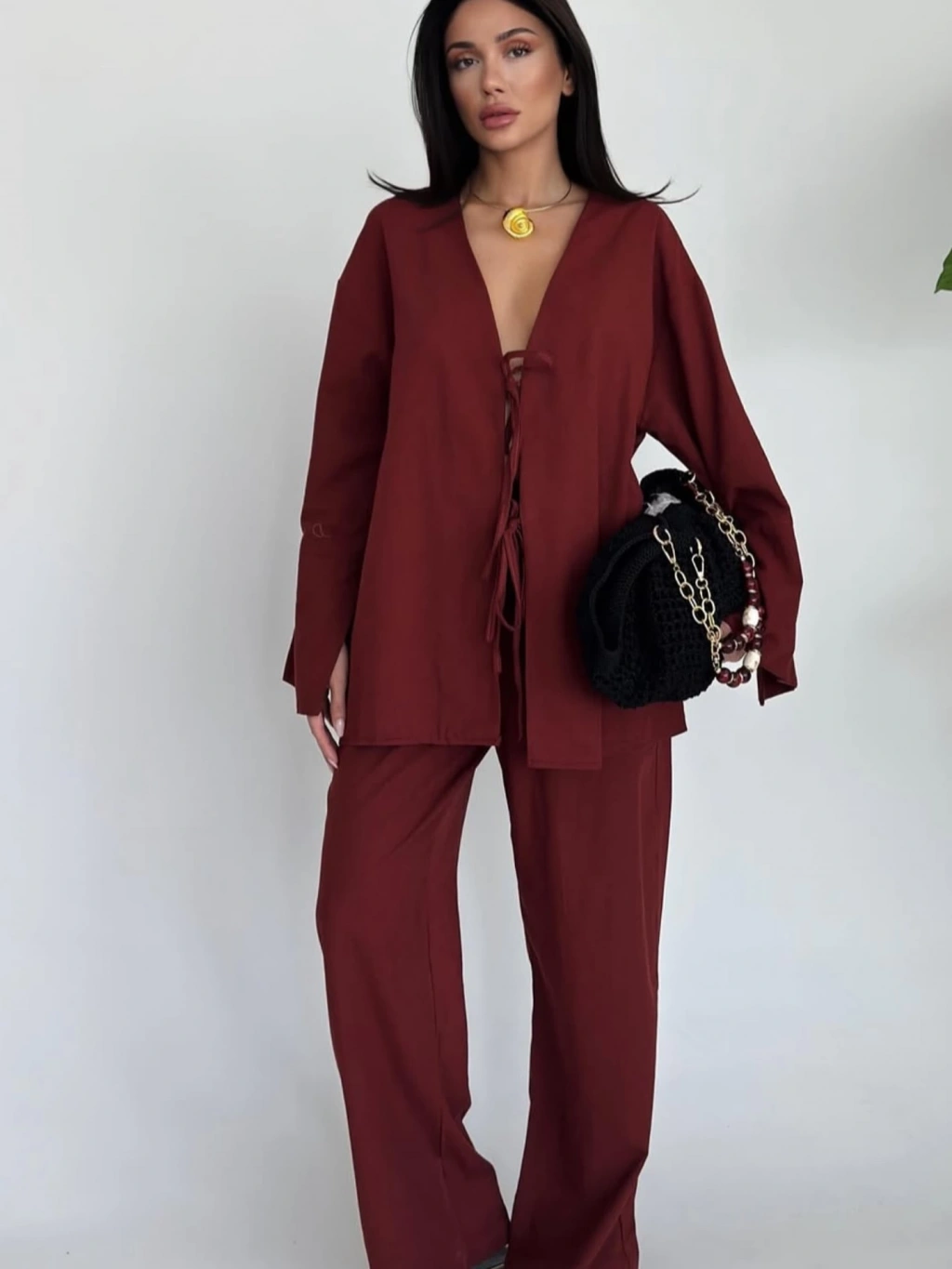 Bordo R. Keten Ön Bağcıklı İkili Takim