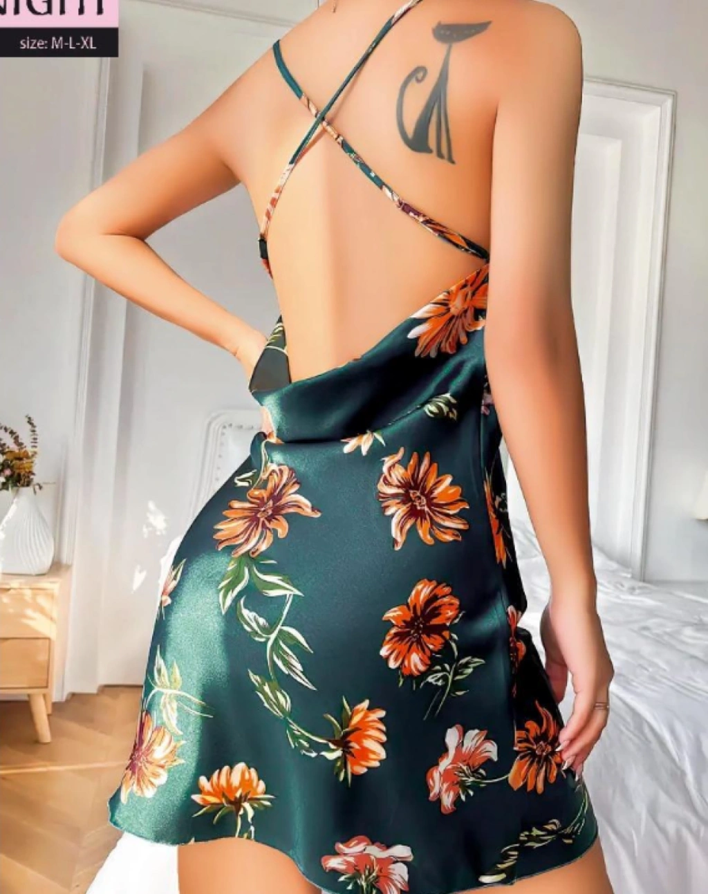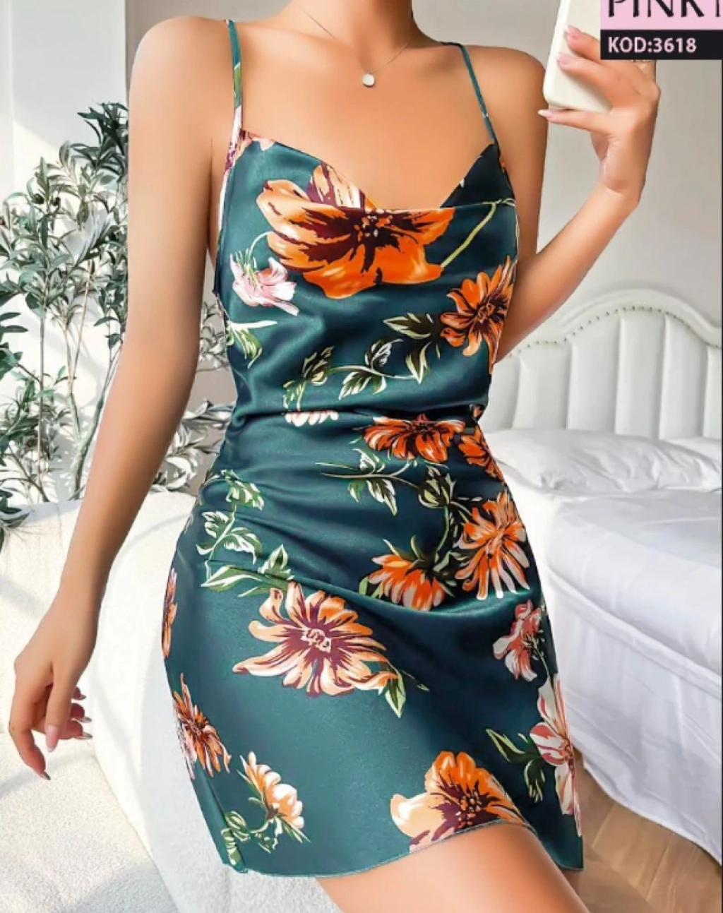 Yeşil R. Saten İnce Askılı Saten Gecelik