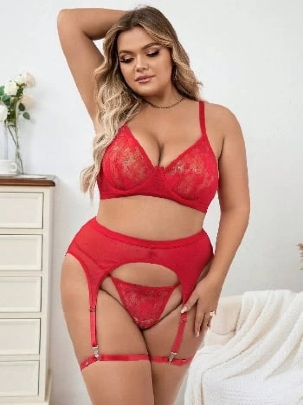 Kirmizi R. Dantel İpli Jartiyer Takim
