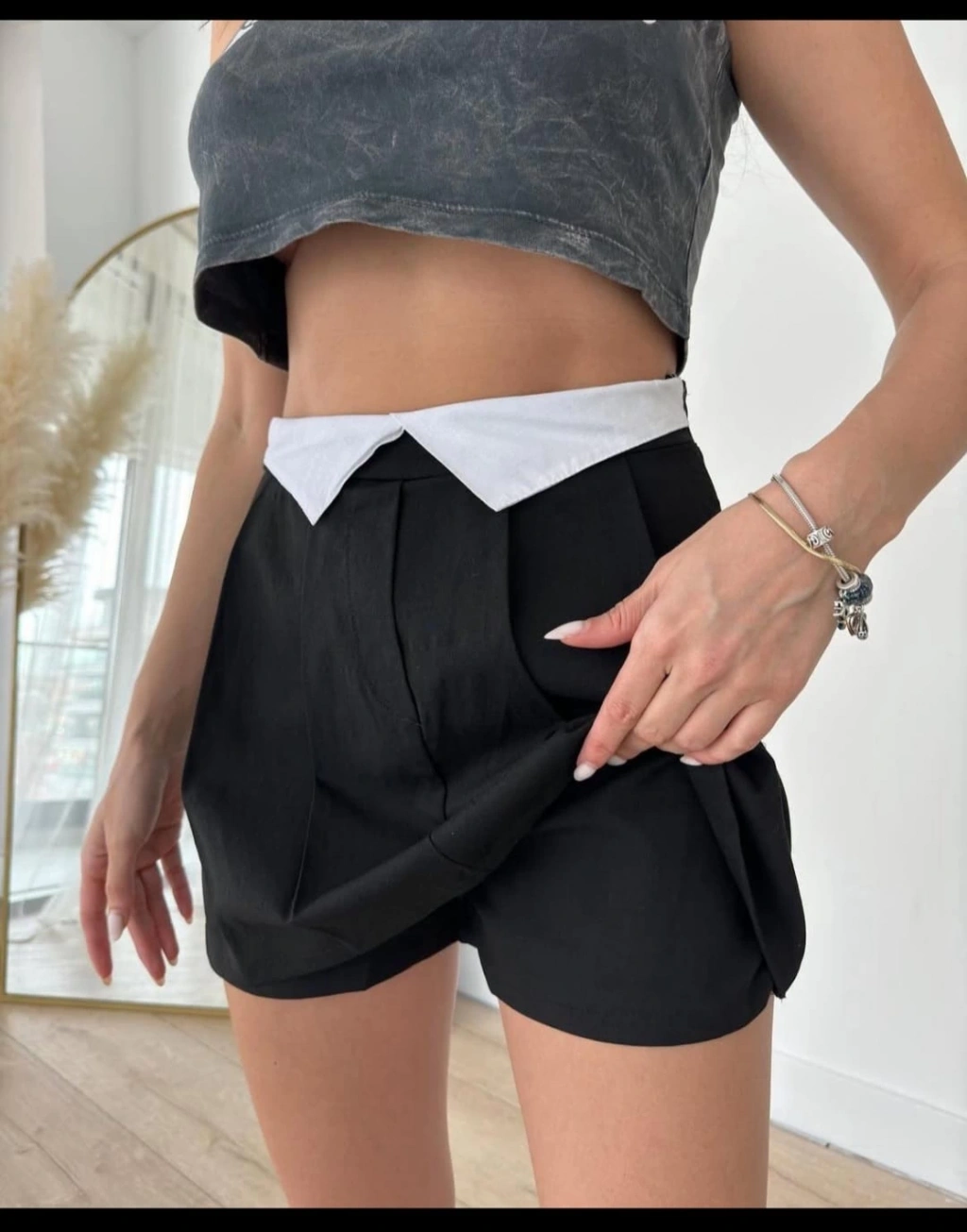 Siyah R. Bel Kapaklı Şort Etek