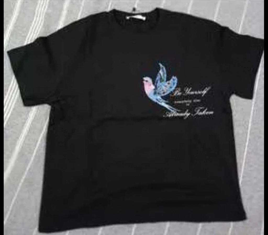 Siyah R. Önü Desenli Arka Dantel Geçişli Bayan Tşhirt