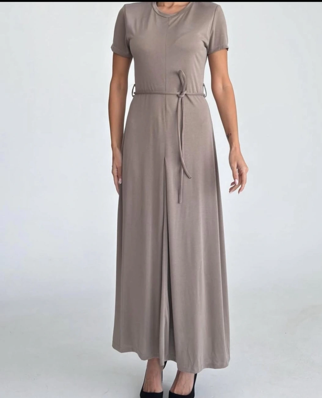 Taş R. Bel İpli Uzun Modal Bayan Elbise