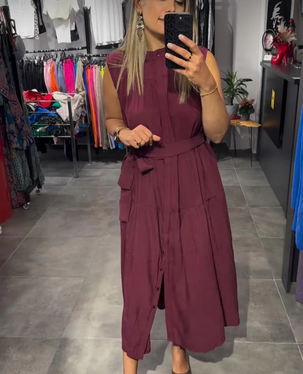 bordu renkli. sıfır kollu kemerli bayan elbisesi zarif ve sofistike tasarımıyla öne çıkar. kaliteli kumaşı ve kesimi sayesinde hem rahat hem de şık bir görünüm sunar. tarzınızı en iyi şekilde yansıtan ideal bir seçimdir.